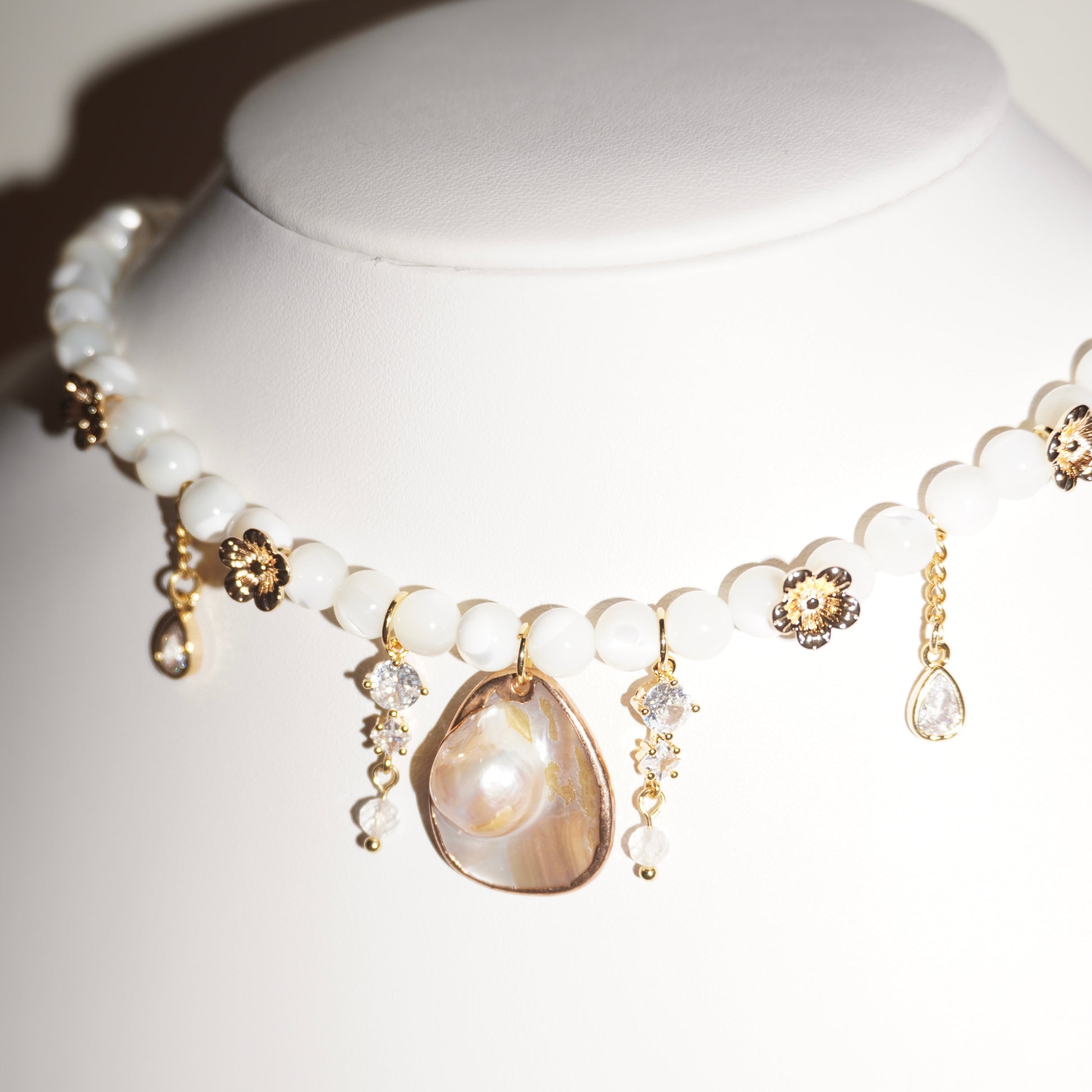 • Dieses Schmuckstück enthält natürliche Materialien wie Edelsteine und Perlen, die empfindlich auf Feuchtigkeit reagieren können.