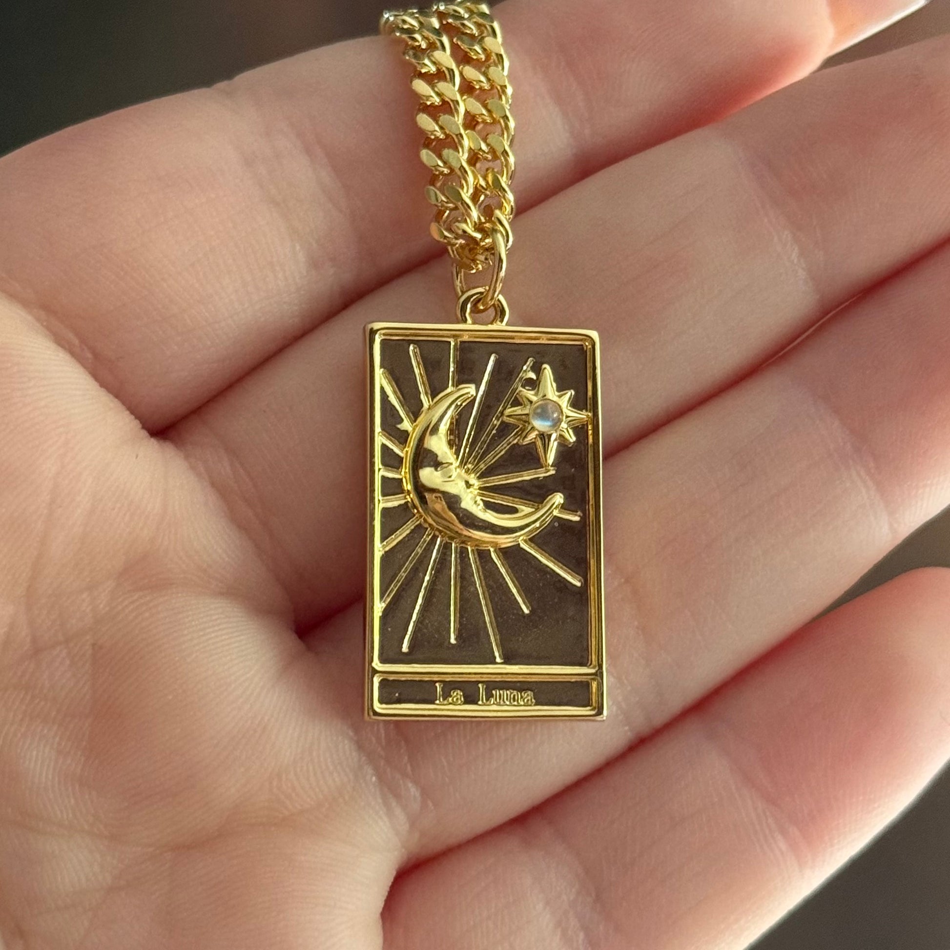 Selbst von uns entworfen und einzigartig: Diese 18k vergoldete Messingkette mit rechteckigem Anhänger ist mit einem sanft schimmernden Mondstein besetzt. Ein besonderes Schmuckstück, das es so nur bei uns gibt.