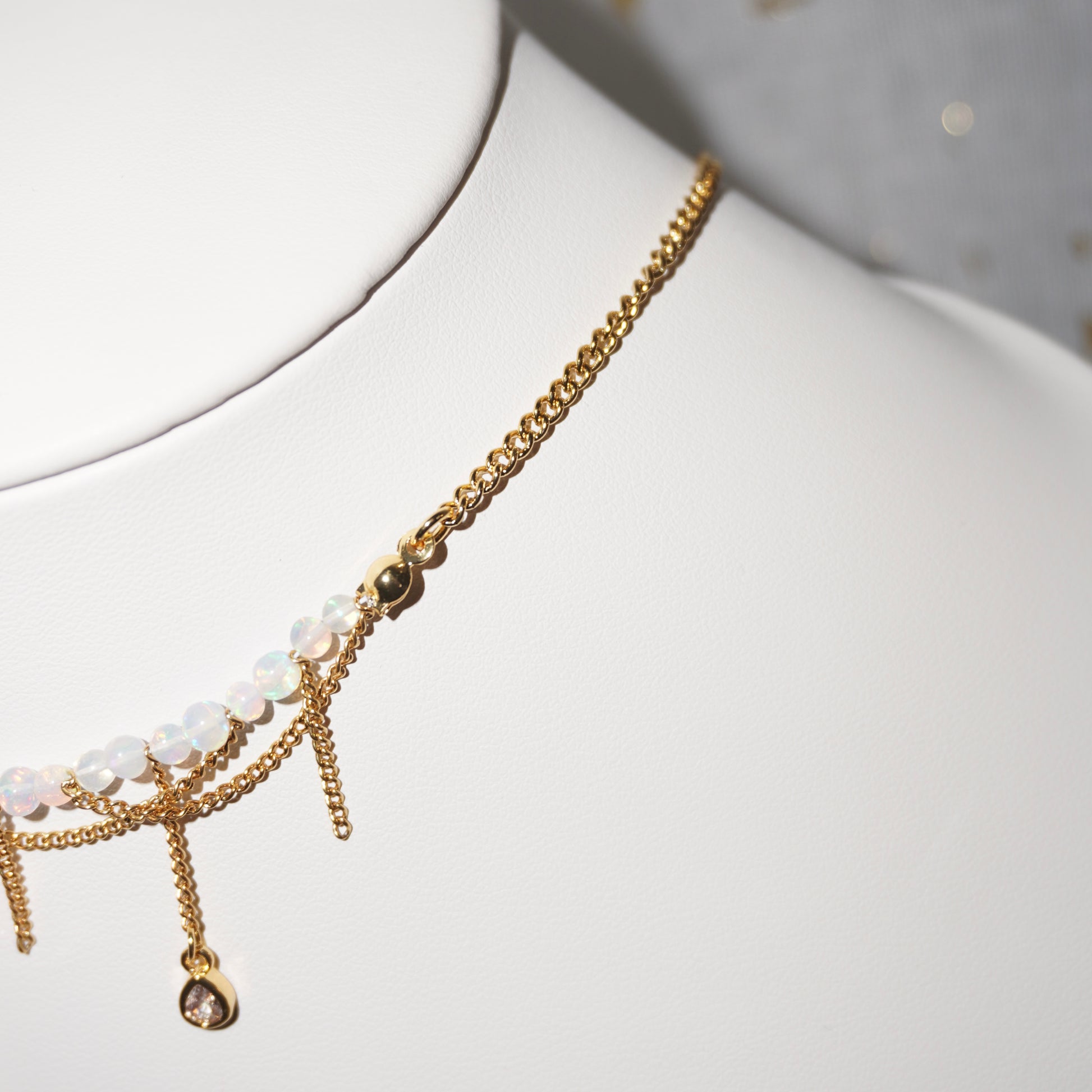 • Dieses Schmuckstück enthält natürliche Materialien wie Edelsteine und Perlen, die empfindlich auf Feuchtigkeit reagieren können.
