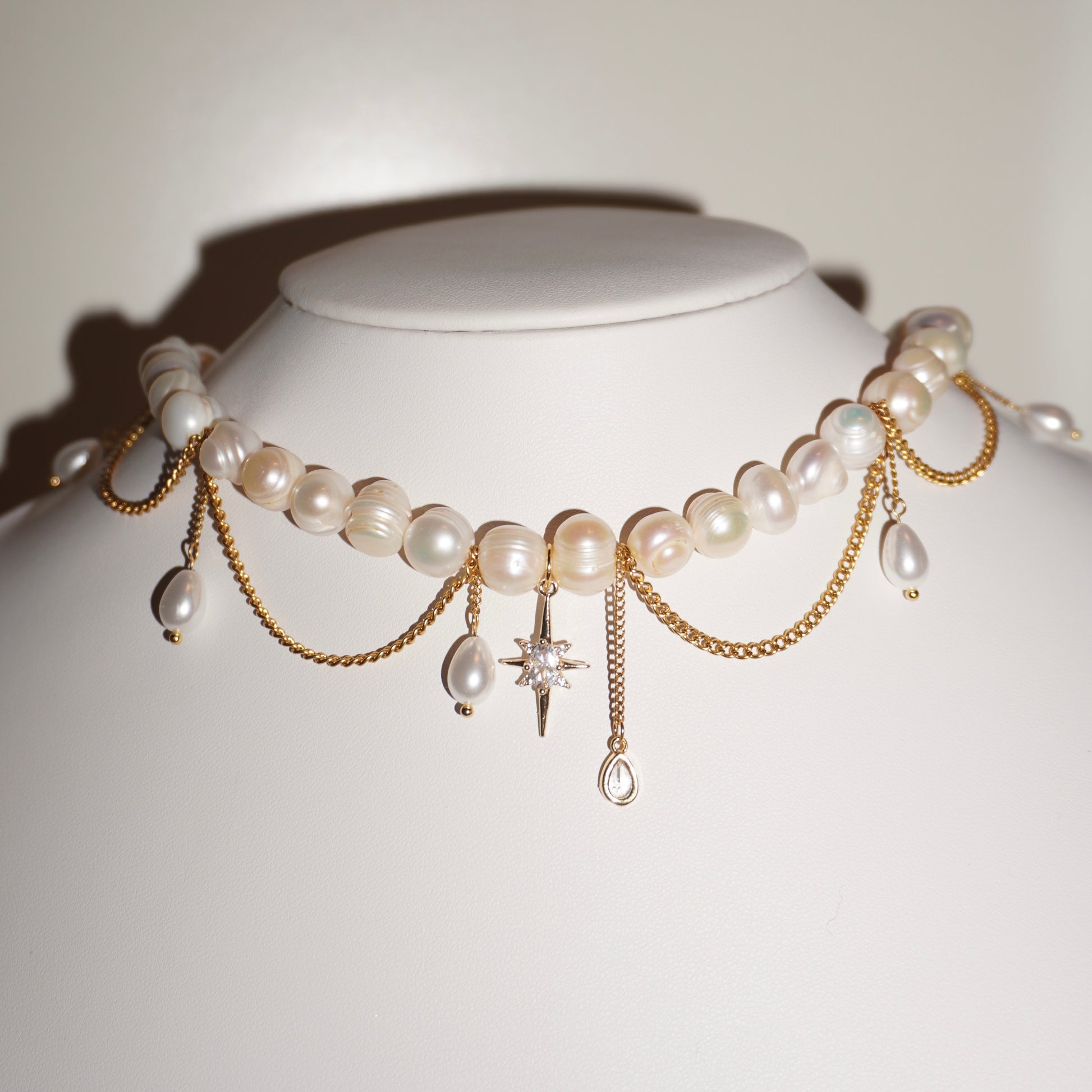 • Dieses Schmuckstück enthält natürliche Materialien wie Edelsteine und Perlen, die empfindlich auf Feuchtigkeit reagieren können.