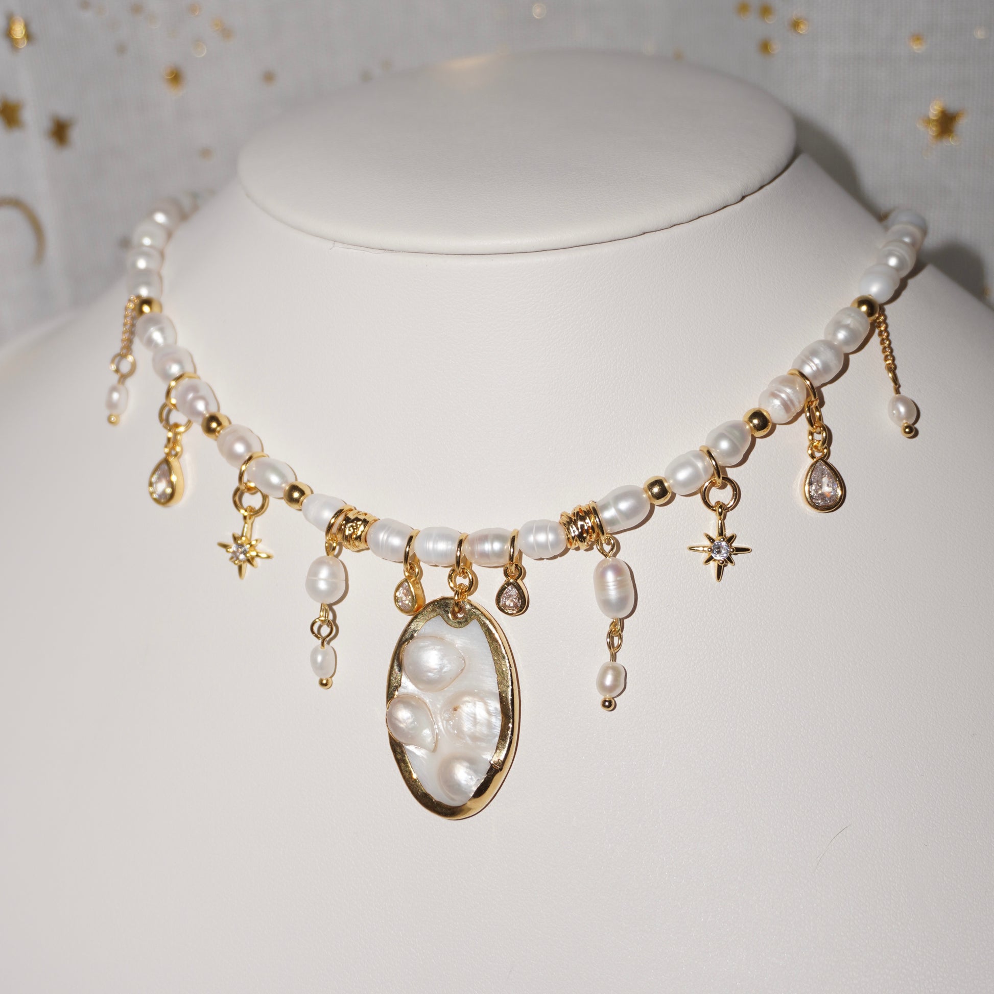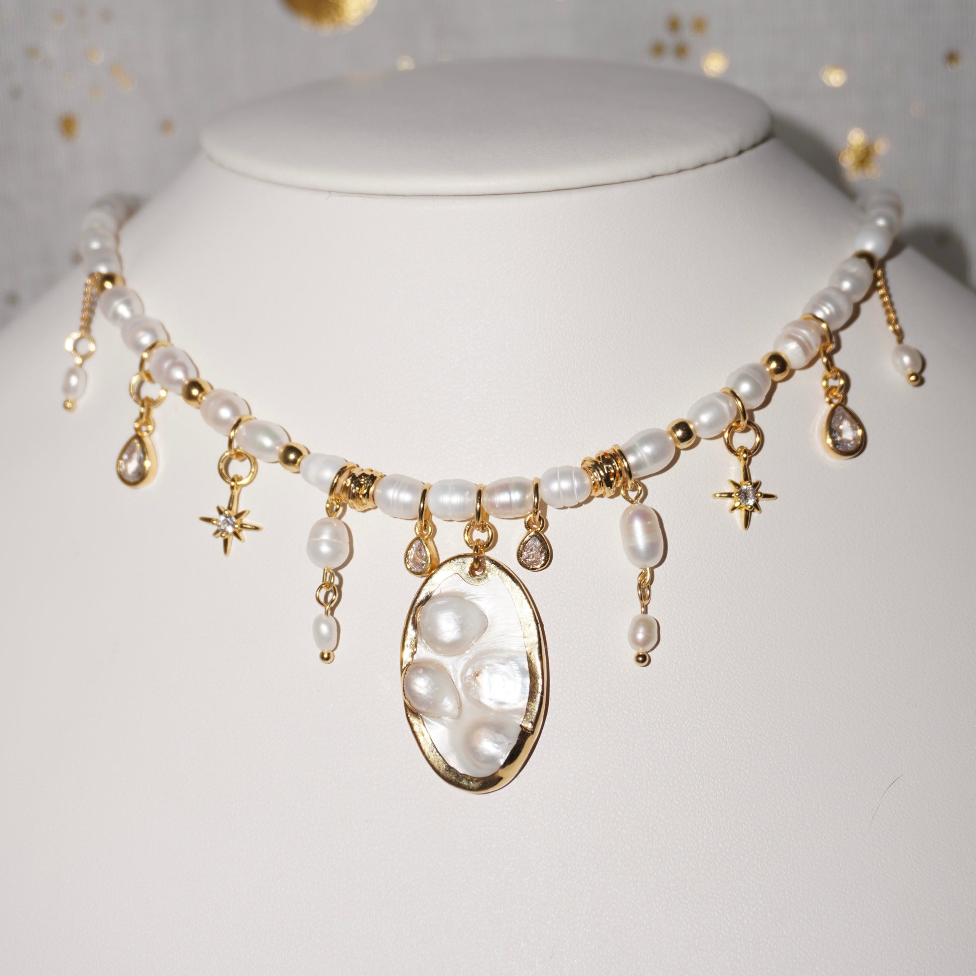 • Dieses Schmuckstück enthält natürliche Materialien wie Edelsteine und Perlen, die empfindlich auf Feuchtigkeit reagieren können.