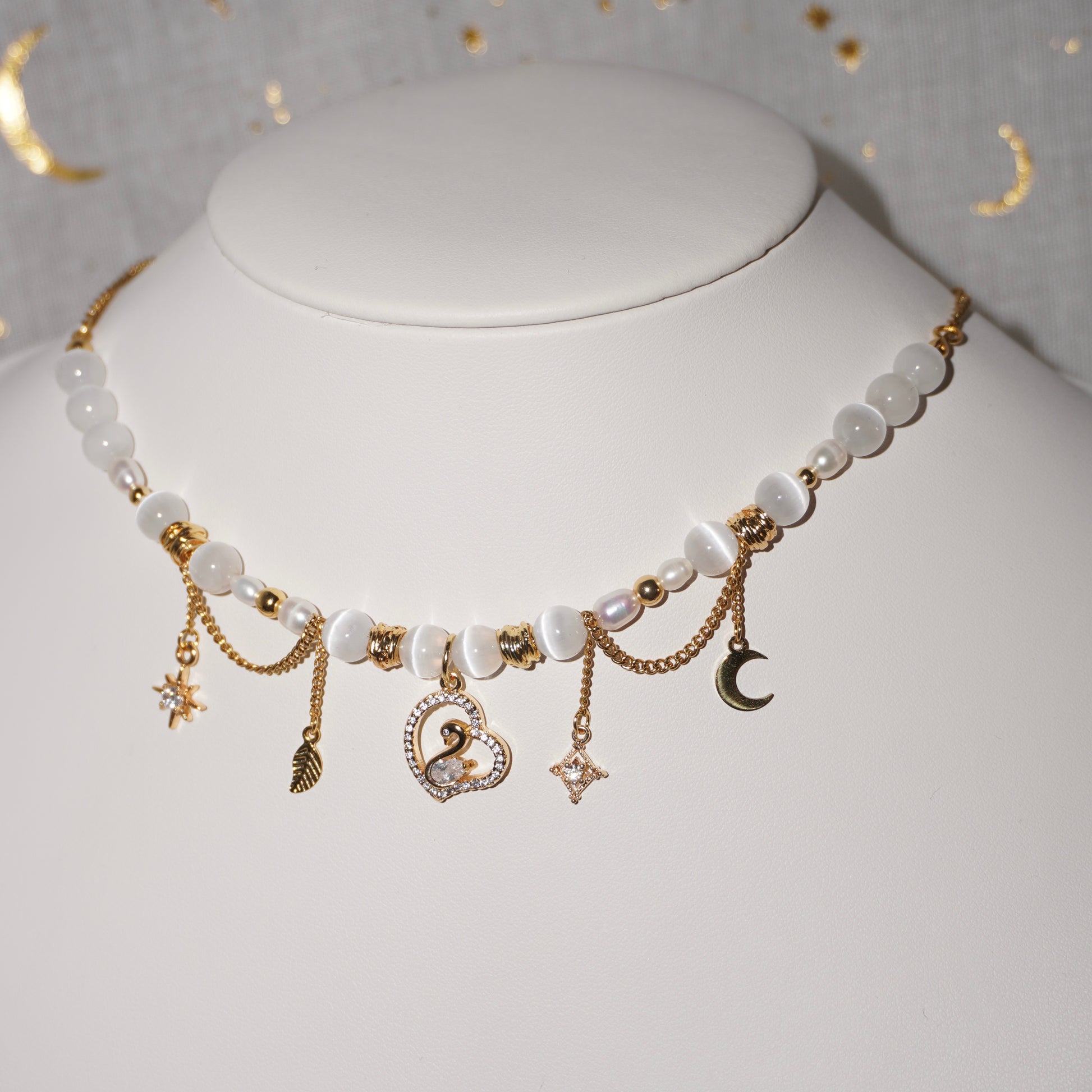 • Dieses Schmuckstück enthält natürliche Materialien wie Edelsteine und Perlen, die empfindlich auf Feuchtigkeit reagieren können.
