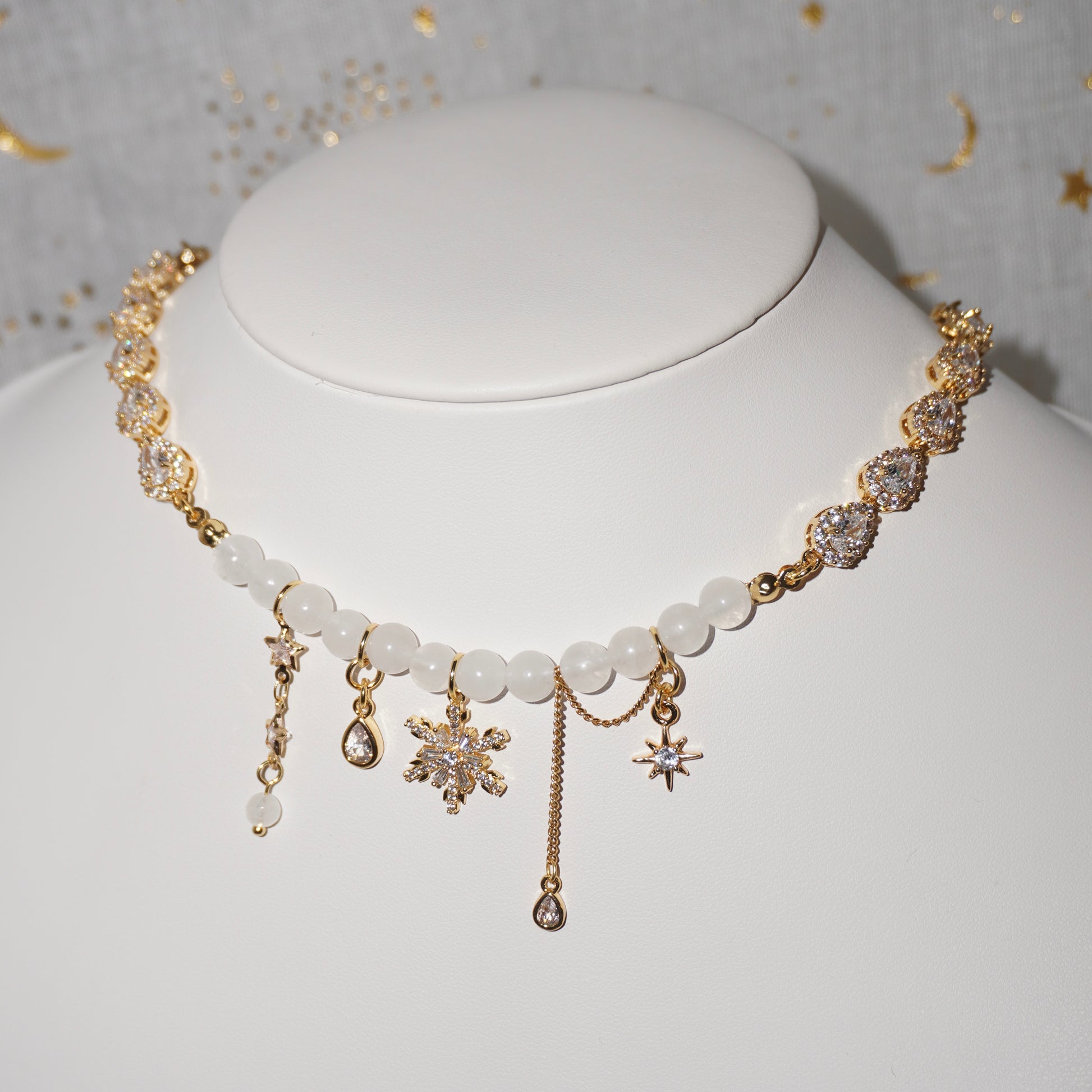 • Dieses Schmuckstück enthält natürliche Materialien wie Edelsteine und Perlen, die empfindlich auf Feuchtigkeit reagieren können.